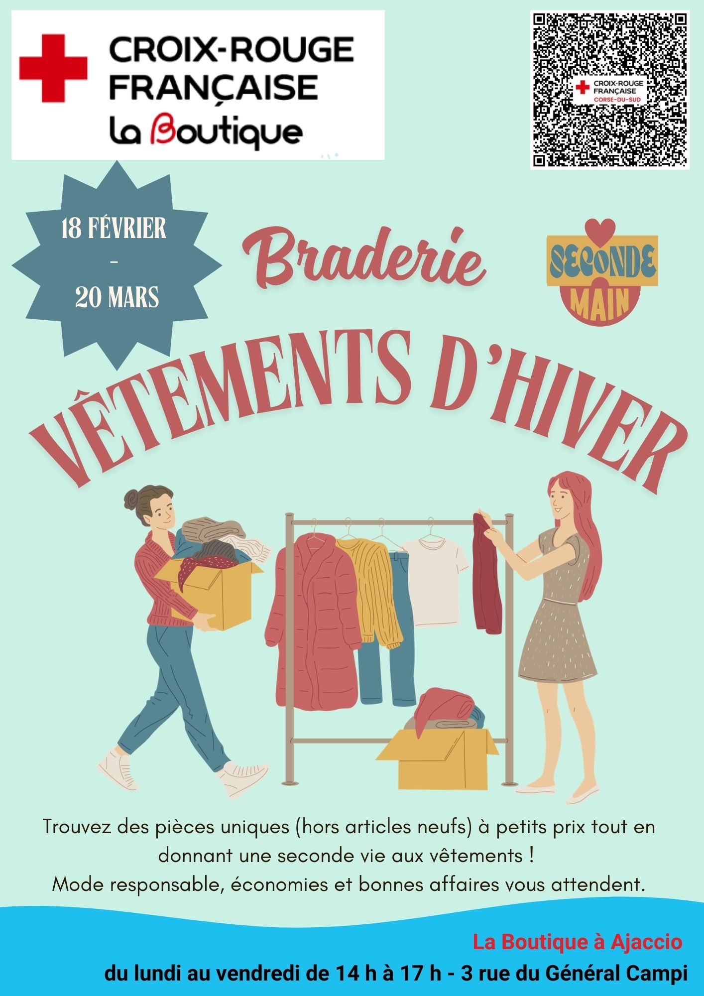 La Boutique de la Croix-Rouge française d’Ajaccio organise sa grande braderie de vêtements d’hiver du 18 février au 20 mars 2026 !
